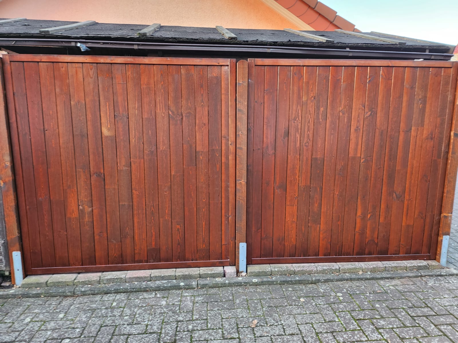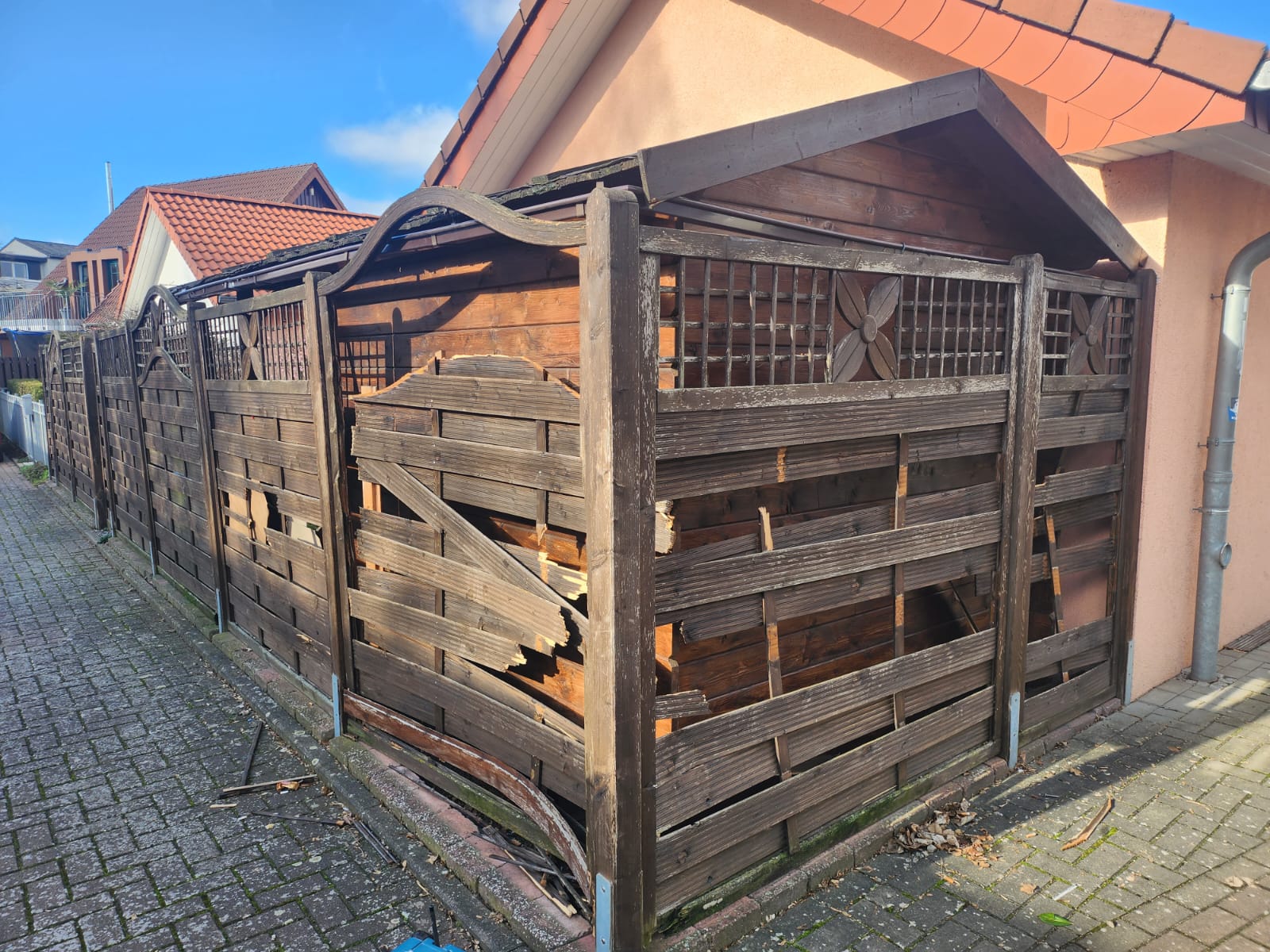 Ein alter, beschädigter Zaun wurde komplett entfernt und durch eine stabile, moderne Holzkonstruktion ersetzt.